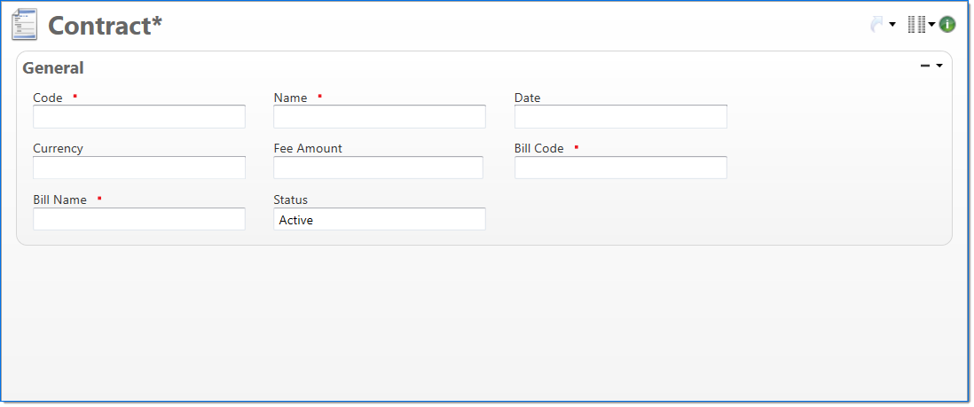 | Bill Code | Enter the code to use when the contract is displayed on the bill report. | |