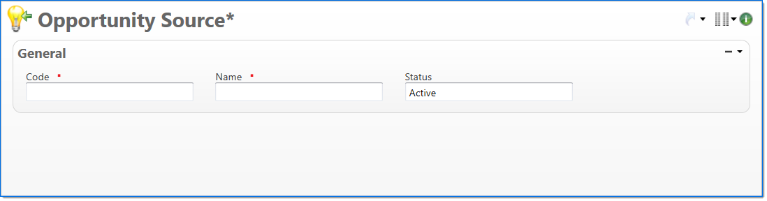 The Opportunity Source screen allows you to add and define opportunity sources. An opportunity source is a custom, client-defined lead source that is assigned to an opportunity to identify where the opportunity originated. This is a reporting parameter used for grouping and sorting and can be used to measure forecasts and past sales results.