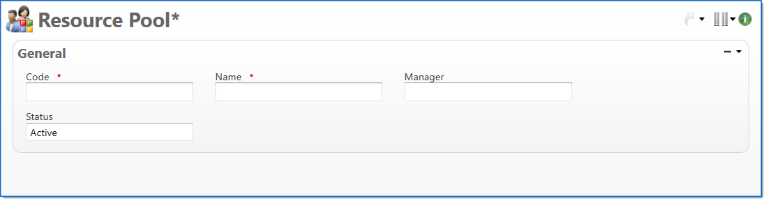 Code | Enter a unique code for the resource pool. Once a code has been entered and submitted, it cannot be changed. |