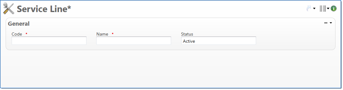 Code | Enter a unique code for the service line. Once a code has been entered and submitted, it cannot be changed. |