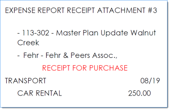 Expense Report Receipt is included in the backup