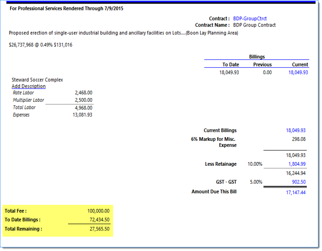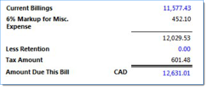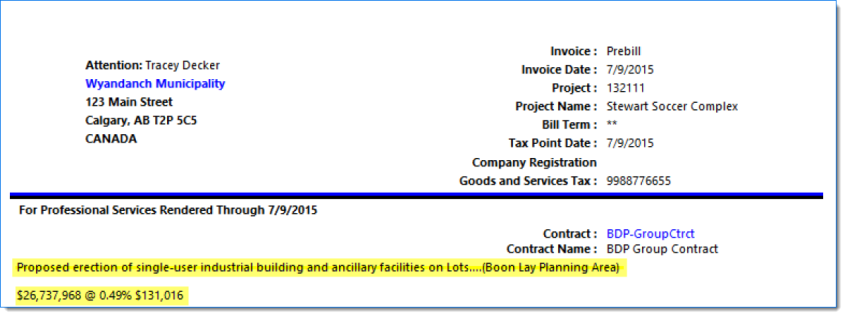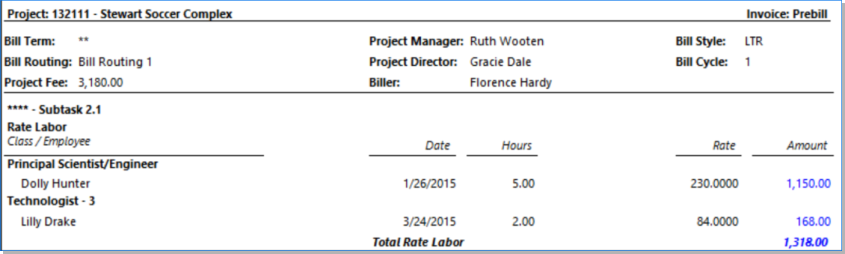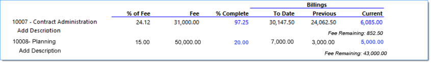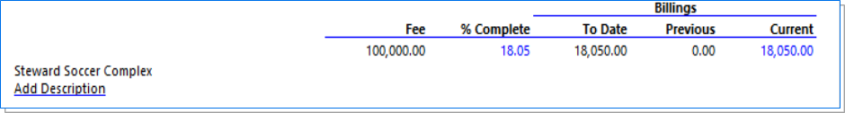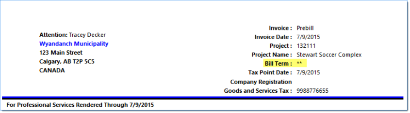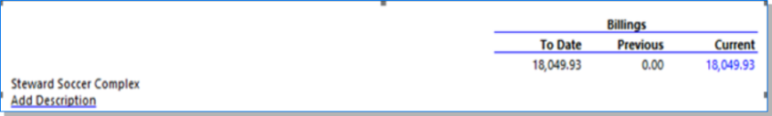 | Note: Descriptions are pulled from the Project / Bill Terms / Bill Description. |
