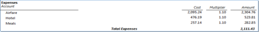Displays Expense Cost Rates and Multipliers on both the Prebill and Final Bill -