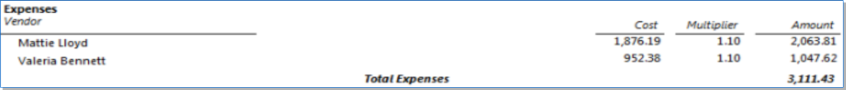 When Expense is included, this displays G&A as a separate line on the cover and will only display cost values on the backup for Multiplier type expenses.