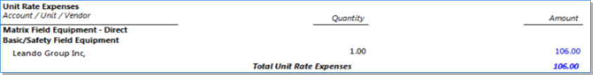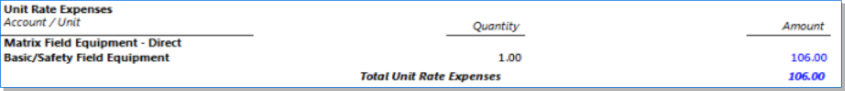Shows Unit Expense Cost Rates and Multipliers on the Prebill only