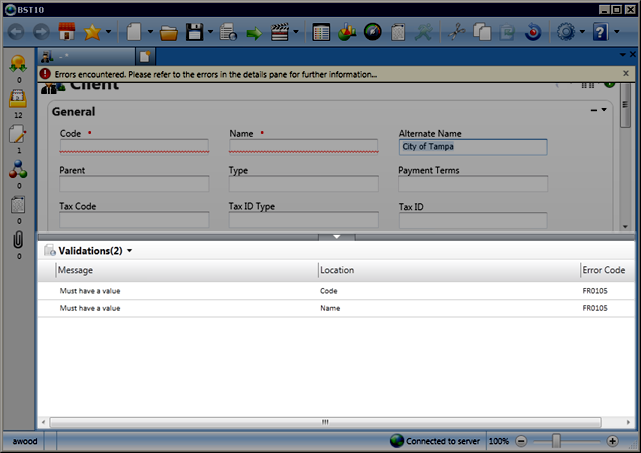 The detail pane is not automatically displayed when BST11 is opened. However, when you submit or validate a document instance, the detail pane is automatically displayed when there are validation errors.
